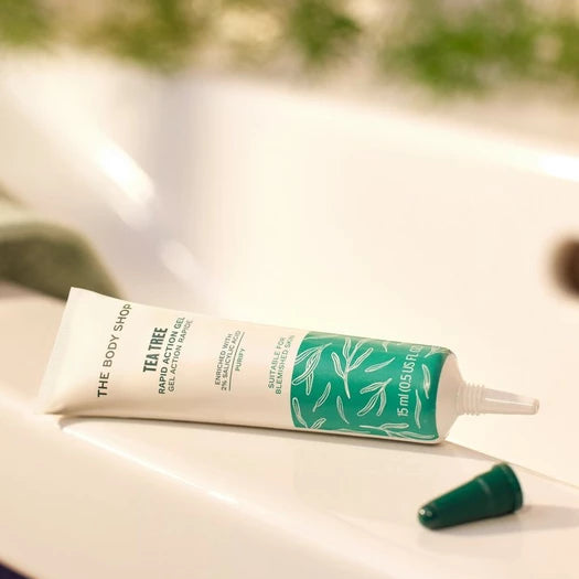Hey, Leute mit fettiger und zu Unreinheiten neigender Haut und Haaren, hört mal zu. Unsere NEUE Tea Tree Hautpflegeserie ist genau das Richtige für euch. Mit Community Fair Trade-Teebaumöl aus Kenia und Salicylsäure hilft sie, unvorhersehbare Hautprobleme in den Griff zu kriegen, indem sie die Haut mattiert und sie klarer aussehen lässt. Egal, ob ihr euren Morgen mit unserem hautklärenden Gesichtswaschgel startet, gezielt Teebaumöl, das schnell wirkende Gel oder die tägliche Lösung verwendet – diese Serie ist einfach unschlagbar!