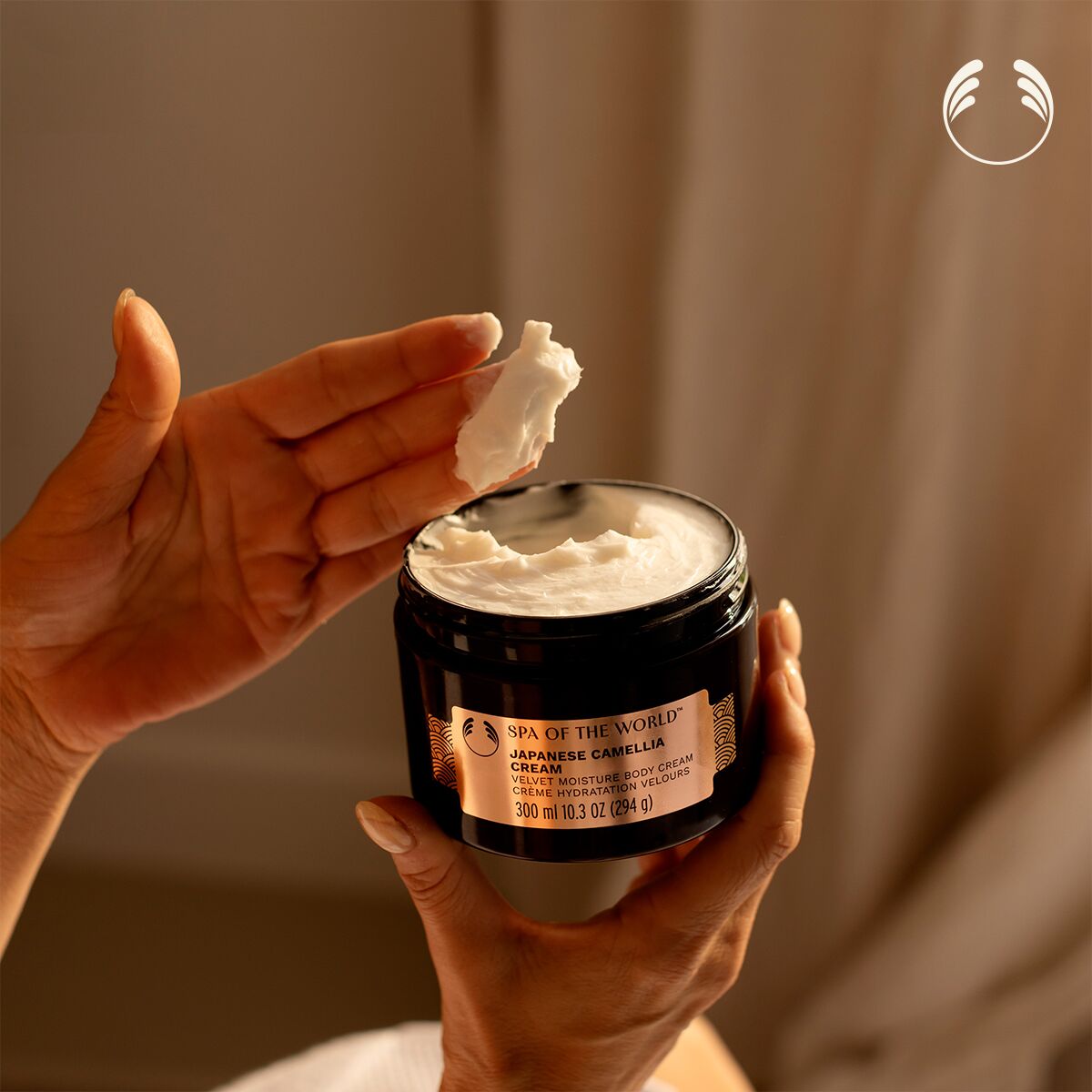 Verwen jezelf met onze Japanse camelia-lichaamscreme voor een fluweelzacht huidgevoel.