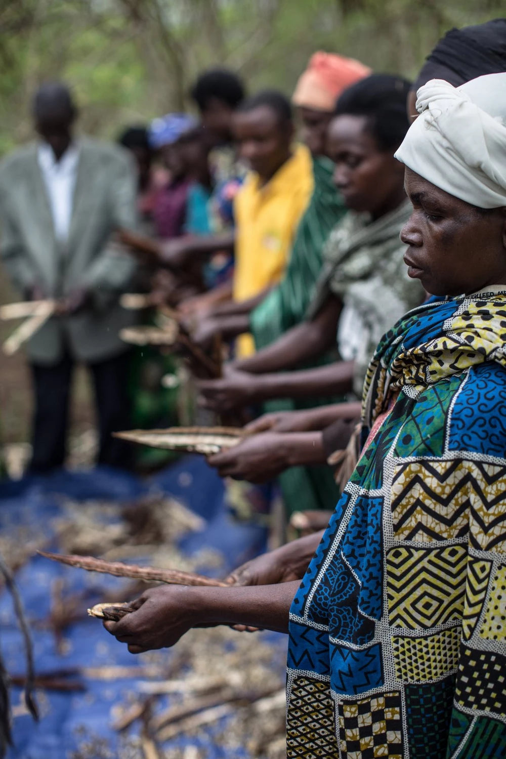 Der faire Preis verschafft den Frauen ein unabhängiges Einkommen und trägt dazu bei, dass sie mehr Selbstvertrauen und Respekt in ihrer Gemeinschaft gewinnen. Wir zahlen auch einen Premiumpreis, um Gemeinschaftsprojekte zu finanzieren, die das Leben von 49.000 Menschen in 11 Dörfern in der weiteren Umgebung positiv beeinflussen. Langfristige Investitionen haben es der Gemeinde ermöglicht, 7 Schulen zu bauen, in denen jedes Jahr etwa 1.200 Schüler/innen unterrichtet werden, und Zugang zu sauberem Wasser und Gesundheitseinrichtungen zu schaffen.