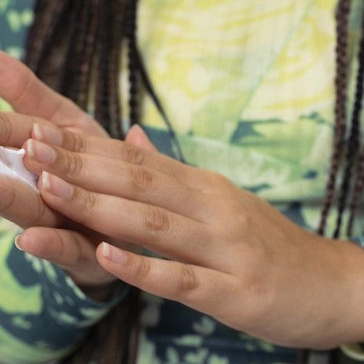 - Gib eine erbsengroße Menge auf deine Handfläche.