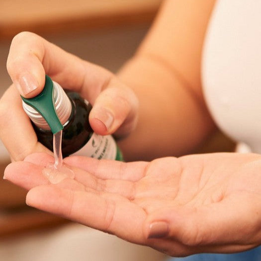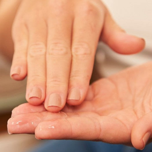 - Trage ein paar Pumpstöße auf die gereinigte, trockene Haut auf.