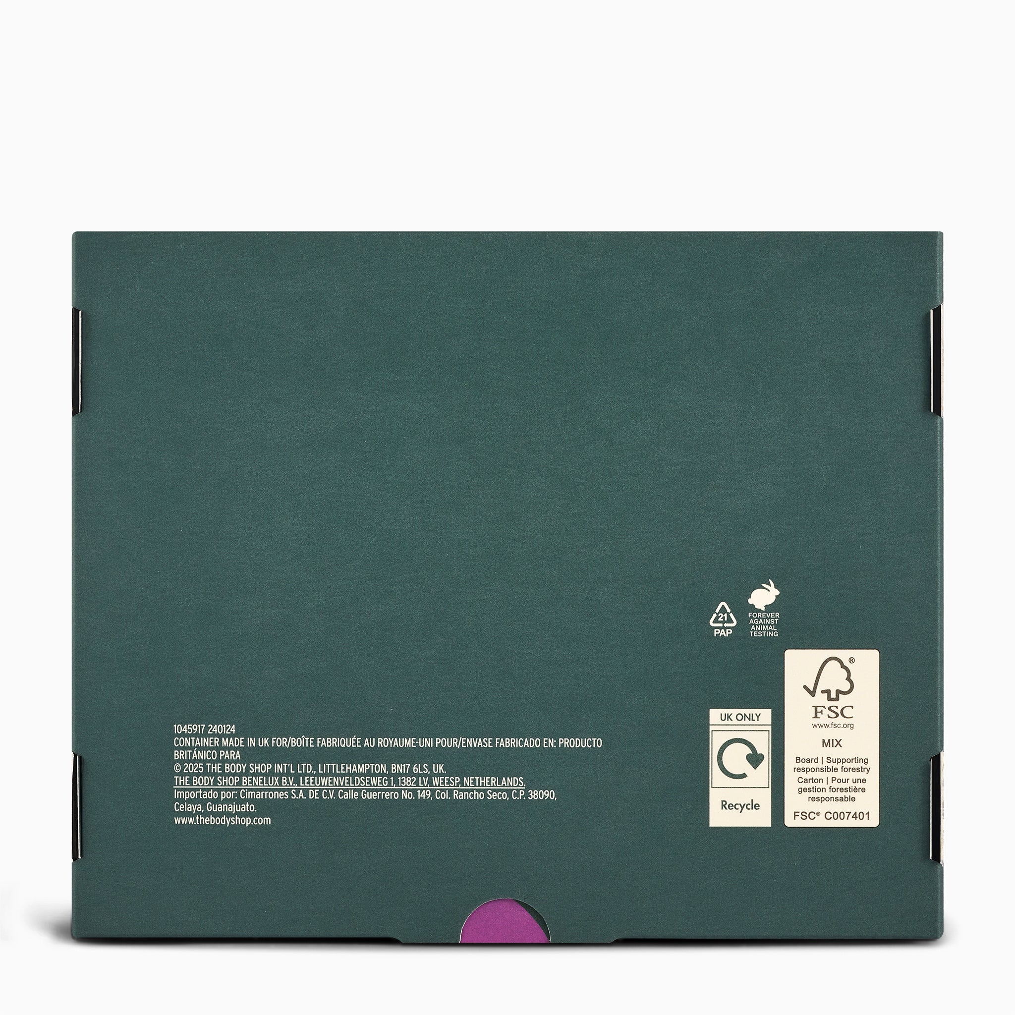 Dieses Set enthält Handbalsame und Cremes in den Duftrichtungen fruchtige Pflaume, süßes Karamell und spritzige Cranberry, die jeweils mit Sheabutter aus fairem Handel aus Ghana angereichert sind, um trockene Hände zu pflegen, zu schützen und geschmeidig zu machen. Dank ihrer perfekten Größe für Handtaschen oder Schreibtische sorgen sie überall für ein wenig Freude, egal wo du die Feiertage verbringst.