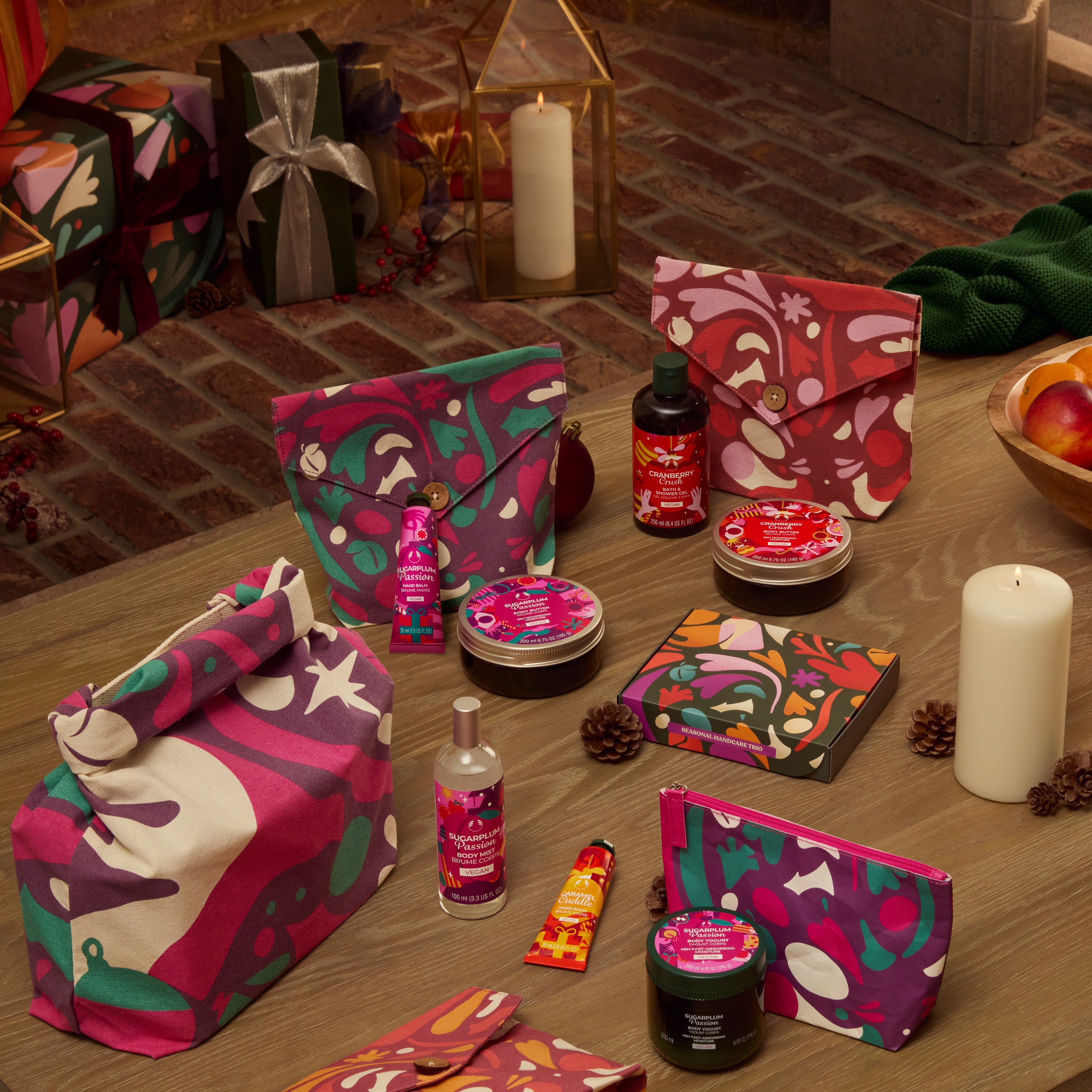 Mit einer Auswahl an pflegenden Produkten, angereichert mit Sheabutter aus fairem Handel aus Ghana und Aloe Vera aus fairem Handel aus Mexiko, macht sie die Haut weich, lindert Trockenheit und pflegt sie, während sie die Luft mit dem festlichen, reichhaltigen und belebenden Duft reifer Pflaumen erfüllt.